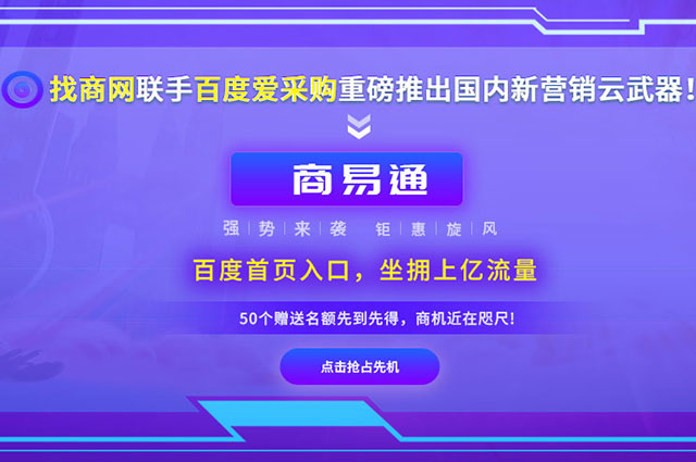 速购通是找商网B2B平台与百度联合打造,整合百度爱采购、百度企业名片等明星服务,为会